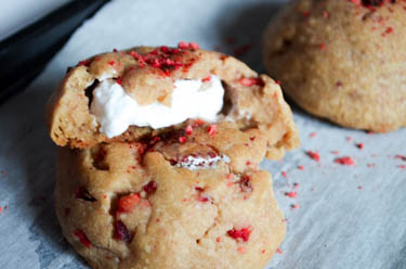 Description: If you’re dreaming of summer, this one’s for you! We’ve got a cookie dough packed full of real strawberries, and the center is the fluffiest cloud of lemon-y meringue. Pretty sunny outlook, in our opinion!